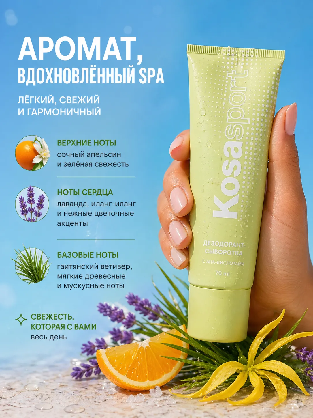 Дезодорант-сыворотка Kosasport с AHA-кислотами